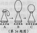 34.(4分)晓涵同学做了一个趣味实验,他把气球中的镁屑加入到盛有稀盐酸的锥形瓶中.整个实验过程如图所示(实验装置的气密性良好),请回答下列问题: