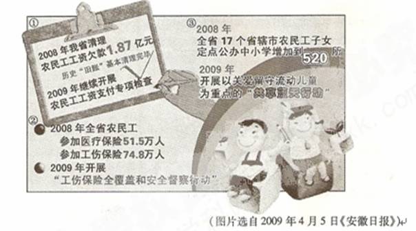 分别概括:①清查农民工工资支付问题。②扩大农民工保险范围。③关心农民工子女教育。