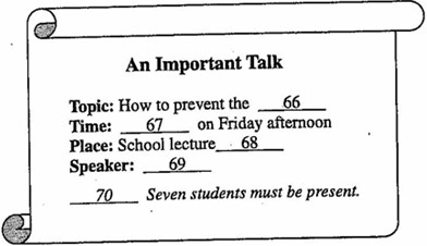 Since the A/H1Nl flu is around us, we should pay great attention to our health and get some knowledge about the terrible disease.Our school has invited Doctor Li to give us a talk about how to prevent(预防)the flu.It will start at 4:00 on Friday aftemoon in our school lecture hall. Students in Grade Seven are required to attend the talk.Please be there on time.