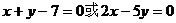 解(略):所求直线方程为3x-4y+10=0或x=2![]()