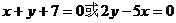 例1.一条直线过点(5,2),且在x轴,y轴上截距相等,则这直线方程为( )![]()