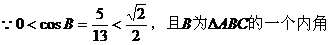 因此,只要根据已知条件,求出cosA,sinB即可得cosC的值。但是由sinA求cosA时,是一解还是两解?这一点需经过讨论才能确定,故解本题时要分类讨论。对角A进行分类。![]()