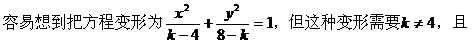 (iii)当k=6时,方程表示圆;(iv)当6<k<8时,方程表示椭圆;![]()