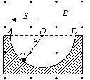 24.(18分)如图所示,固定的半圆弧形光滑轨道置于水平方向的匀强电场和匀强磁场中,轨道圆弧半径为R,磁感应强度为B,方向垂直于纸面向外,电场强度为E,方向水平向左。一个质量为m的小球(可视为质点)放在轨道上的C点恰好处于静止,圆弧半径OC与水平直径AD的夹角为α(sinα=0.8)。