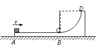 25.(20分)竖直平面内的轨道ABCD由水平滑道AB与光滑的四分之一圆弧轨道CD组成,AB恰与圆弧CD在C点相切,轨道放在光滑水平面上,如图所示。一个质量为m的小物块(可视为质点)从轨道的A端以初动能E冲上水平滑道AB,沿着轨道运动,由DC弧滑下后停在水平滑道AB的中点。已知水平滑道AB长为L,轨道ABCD的质量为3m。求: