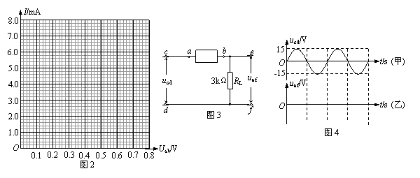 ⑶若将此黑箱接入图3电路中,并在该电路的cd两端输入如图4(甲)所示的正弦电压信号ucd,请在图4(乙)中定性画出负载电阻RL上的电压信号uef的波形。