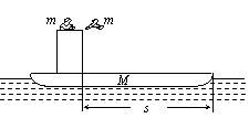25.(18分)如图所示,在平静的水面上漂浮着一块质量为M=150g的带有支架的木板。木板左边的支架上静静地蹲着两只质量各为m=50g的青蛙。支架高h=20cm。支架右方的水平木板长s=120cm。突然,其中有一只青蛙先向右水平地跳出,恰好进入水中。紧接其后,另一只也向右水平地跳出,也恰好进入水中。请同学们计算:(水的阻力忽略不计,取g=10m/s2,答案保留2位有效数字。)