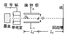 ⑵若要使纸上的字体放大,可通过调节两极板间的电压或调节偏转极板的右端距纸的距离L2来实现。现调节L2使纸上的字体放大10%,调节后偏转极板的右端距纸的距离L2/为多大?