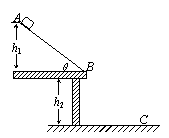 (16分)如图,AB是高h1=0.6m、倾角θ=37º的斜面,放置在水平桌面上,斜面下端是与桌面相切的一小段圆弧,且紧靠桌子边缘。桌面距地面的高度h2=1.8m。一个质量为m=1.0kg的小滑块从斜面顶端A由静止开始沿轨道下滑,运动到斜面底端B时沿水平方向离开斜面,落到水平地面上的C点。滑块与斜面间的动摩擦因数μ=0.5。不计空气阻力。g=10m/s2。sin37º=0.6,cos37º=0.8。求: