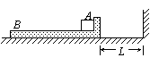 (20分)如图,右端有固定挡板的滑块B放在光滑的水平面上。B的质量为M=0.80kg,右端离墙壁的距离L=0.090m。在B上靠近挡板处放一个质量m=0.20kg的小金属块A。A和挡板之间有少量炸药。A和B之间的动摩擦因数μ=0.20。点燃炸药,瞬间释放出化学能。设有E0=0.50J的能量转化为A和B的动能。当B向右运动与墙壁发生碰撞后,立即以碰前的速率向左运动。A始终未滑离B。g=10m/s2。求:
