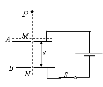 如图所示, A、B为水平放置的两个平行金属板,两板相距d,分别与电源两极相连,两板的中央各有一个小孔M和N。今有一带电油滴,质量为m,从A板的上方距A板为d的P点由静止开始自由下落(P、M、N在同一竖直线上),空气阻力忽略不计,带电油滴通过N孔时的动能EK<2mgd。若将极板A向上移一小段距离,到图中虚线所示位置,则带电油滴通过N孔时的动能EK’和油滴所带电荷的种类是