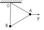 19.两个相同的小球A和B,质量均为m,用长度相同的两根细线把A、B两球悬挂在水平天花板上的同一点O,并用长度相同的细线连接A、B两小球。然后用一水平方向的力F作用在小球A上,此时三根线均处于直线状态,且OB线恰好处于竖直方向,如图所示。如果不考虑两球的大小,两小球均处于静止状态,则力F的大小为( D )