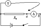 (2)为提高金属丝电阻的测量精确度,减少误差,实验中需要确定电流表的内接或外接。由于表的内阻不清楚,一位同学采用了试触法进行判断。具体做法是:按如图所示电路闭合电键后,用电压表的移动端(带箭头部分)接到a点时,电压表示数为2.0V,电流表示数为0.40A;当电压表的移动端接到b点时,电压表示数为3.0V,电流表示数为0.38A。