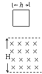 边长为h的正方形金属线框,从图中所示的位置由静止开始下落,通过一匀强磁场区域,磁场方向是水平的,且垂直于纸面和线框平面,磁场区域宽度为H(H>h),上下边界如图中水平虚线所示。从线框开始下落到完全穿过磁场区的整个过程中