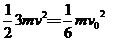 由动量守恒 mv0=3mv (2分)