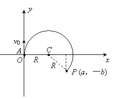 24.(20分)如图所示,真空中有直角坐标系xOy,P是坐标系中的一个点,坐标为(a,-b )。有一质量为m电荷量为+q的质点A从原点O沿y轴正方向以速度v0射出,不计重力的影响。