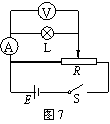 (2)一个小灯泡的额定电压为6.3V,额定电流约为0.3A,用以下所给的实验器材描绘出小灯泡的伏安特性曲线。实验电路如图7所示。
