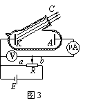 利用光电管研究光电效应实验原理示意图如图3所示,用可见光照射阴极K,电流表中有电流通过,则