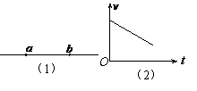 19. a、b是某电场中的某一条电场线上的两点,如图(1)所示。一带负电的质点只受电场力的作用,沿电场线从a点运动到b点.在这个过程中,此质点的速度-时间图象如图(2)所示,比较a、b两点电势的高低φa和φb以及场强Ea和Eb的大小,正确的是(B)