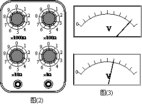 ②.(5分)闭合电键之后,适当调节滑动变阻器滑片p和电阻箱的旋钮,当电阻箱调节成图(2)所示的情景时,两电压表指针的位置如图(3)所示,由此可知,此时电阻箱的阻值为