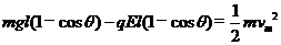 (3)带电小球到最低点时速度最大,设小球的最大速度为vm。小球摆下过程中重力做正功,电场力做负功, 由动能定理得