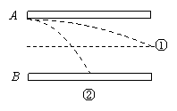 17.如图所示,有一带电粒子贴A板沿水平方向射入匀强电场,当偏转电压为U1时,带电粒子沿轨迹①从两板正中间飞出;当偏转电压为U2时,带电粒子沿轨迹②落到B板中间;设两次射入电场的水平速度相同,不计粒子的重力,则电压U1、U2之比为( A )