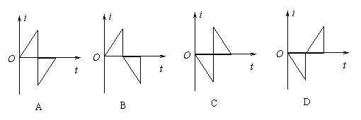 18.如图所示,一直角三角形金属框,向左匀速地穿过一个方向垂直于纸面向内的匀强磁场,磁场仅限于虚线边界所围的区域内,该区域的形状与金属框完全相同,且金属框的下边与磁场区域的下边在一直线上。若取顺时针方向为电流的正方向,则金属框穿过磁场过程的感应电流随时间变化的图象是下列四个图中的( C )