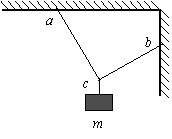 19.用三根轻绳将质量为m的物块悬挂在空中,如图所示。已知绳ac和bc与竖直方向的夹角分别为30°和60°,则ac绳和bc绳中的拉力分别为 ( A )