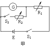 1)首先要用半偏法测定电流表的内阻。如果采用如图甲所示的电路测定电流表G的内电阻并且要想得到较高的精确度,那么从以上给的器材中,可变电阻R1应选用 ,可变电阻R2应选用 ,电源应选用 。(以上三空填写器材前面的数字标号)