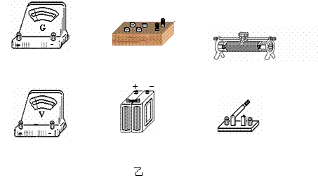 3)图乙所示器材中,一部分是将电流表改装为电压表所需的,其余是为了把改装成的电压表跟标准电压表进行校对所需的。在下面方框中画出改装和校对都包括在内的电路图(要求对0-3V的所有刻度都能在实验中进行校对)。