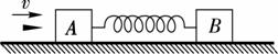 22.(16分)如图,在光滑水平面上放着两个质量分别为2m和3m的滑块A和B,把它们用一根长而轻的弹簧连接在一起,使之处于静止状态。突然,一颗质量为m、速度为v的子弹击中A,此后子弹能与A瞬间共速并留在其中。在子弹、滑块A与B相互作用的过程中,求: