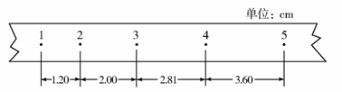 (1)用电磁打点计时器记录一小车作匀变速直线运动的纸带,如图所示。图中1、2、3、4、5是每隔0.1s所取的计数点,由实验数据可知,小车运动的加速度大小为 m/s,小车通过计数点2的瞬时速率为 m/s。