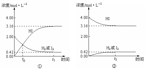 C.图①②中当 c(HI)=3.16mol/L时,反应停止了