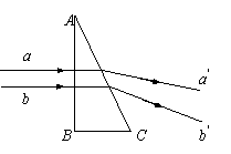 a、b两平行细光束垂直射入直角玻璃三棱镜的AB面,对应的折射光束a'、b'如图所示,以下说法正确的是
