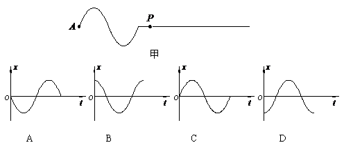 16.振源A带动细绳上下振动,某时刻在绳上形成的波形如图甲所示,规定绳上各质点向上运动的方向为x轴的正方向,当波传播到细绳上的P点时开始计时,乙图的四个图形中能表示P点振动图象的是