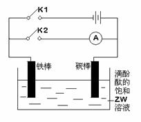 第二步. 将开关K1断开,向水槽中滴入XW的溶液至红色恰