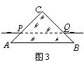 一个等腰直角三棱镜的横截面如图3所示,沿此横截面有一细束绿光从AC面的P点平行于底面AB方向射入棱镜后,经AB面反射,再从BC面的Q点射出,且PQ∥AB(图中未画出光在棱镜内的光路)。如果将一细束蓝光沿同样的路径从P点射入三棱镜,则从BC面射出的光线 ( C )