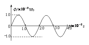 有一个小型发电机,机内的矩形线圈匝数为100匝,电阻为0.5Ω。线圈在匀强磁场中,以恒定的角速度绕垂直于磁场方向的固定轴转动。穿过每匝线圈的磁通量Φ随时间的变化规律如图所示。由此可知发电机电动势瞬时值表达式为