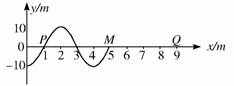 16.(宣)如图所示,一列简谐横波沿x轴正方向传播,从波传到x=5m处的M点开始计时(t=0s),已知开始计时后,P点在t=0.3s的时刻第一次到达波峰,下面说法中正确的是