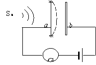 传感器是把非电学物理量(如位移、压力、流量、声强等)转换成电学量的一种元件。如图所示为一种电容传感器,电路可将声音信号转化为电信号。电路中a、b构成一个电容器,b是固定不动的金属板,a是能在声波驱动下沿水平方向振动的镀有金属层的振动膜。若声源S发出频率恒定的声波使a振动,则a在振动过程中