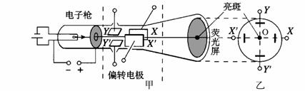 ①让亮斑沿OY向上移动,在偏转电极YY ’加电压,且Y’比Y电势高