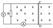 (16分)如图所示,长度为L=0.2m、电阻r=0.3Ω、质量m=0.1kg的金属棒CD,垂直跨搁在位于水平面上的两条平行光滑的金属导轨上,导轨间距离也为L,棒与导轨间接触良好,导轨电阻不计。导轨左端接有R=0.5Ω的电阻,垂直导轨平面的匀强磁场向下穿过导轨平面,磁感强度B=4T。现以水平向右的恒定外力F使金属棒右移,当金属棒以v=2m/s的速度在导轨平面上匀速滑动时,求: