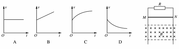18.如图所示,两根竖直放置的光滑平行导轨,其中一部分处于方向垂直导轨所在平面并且有上下水平边界的匀强磁场中。一根金属杆MN保持水平并沿导轨滑下(导轨电阻不计),当金属杆MN进 入磁场区后,其运动的速度随时间变化的图线不可能的是