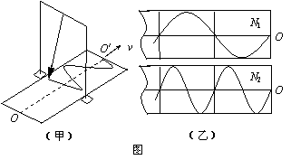 如图(甲)所示是用沙摆演示振动图象的实验装置,沙摆的运动可看作简谐运动,实验时在木板上留下图示的痕迹。图(乙)是两个沙摆在各自板上形成的曲线,若板N1和板N2拉动的速度v1和v2的关系为v2=2v1,则板N1和板N2上曲线所代表的振动周期T1和T2的关系为