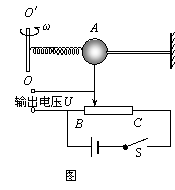 角速度计可测量飞机、航天器、潜艇的转动角速度,其结构如图所示。当系统绕轴OO′转动时,元件A发生位移并输出相应的电压信号,成为飞机、卫星等的制导系统的信息源。已知A的质量为m,弹簧的劲度系数为k、自然长度为l,电源的电动势为E、内阻不计。滑动变阻器总长也为l ,电阻分布均匀,系统静止时P在B点,当系统以角速度ω转动时,则: