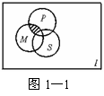 11.(1999全国,1)如图1-1,I是全集,M、P、S是I的3个子集,则阴影部分所表示的集合是( )