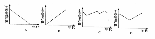 13.下列图示中,最能显示“文革”期间工农业总产值变化趋势的一幅是: