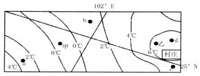 下图为我国某地区1月份平均气温等温线图,读图回答38-39题。
