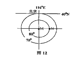 图12为某时刻我国局部地区太阳高度分布示意图,图中圆圈为等太阳高度线,水平直