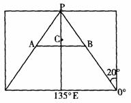 材料二如右图,A,B在同一纬线上,黑瞎子岛处在C点,PA,PB是晨昏线的一部分,A点的时间为19点20分。回答下列问题。